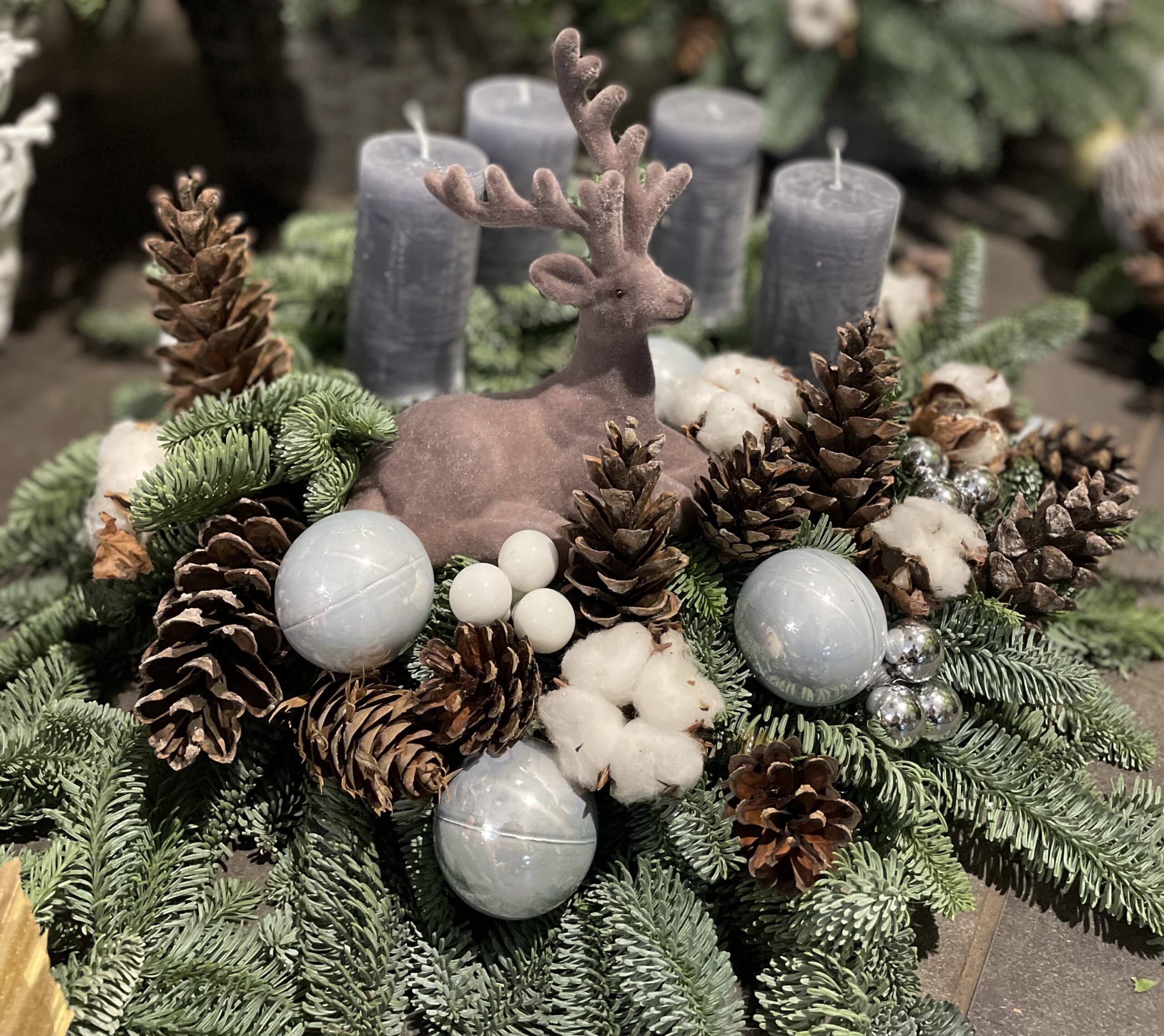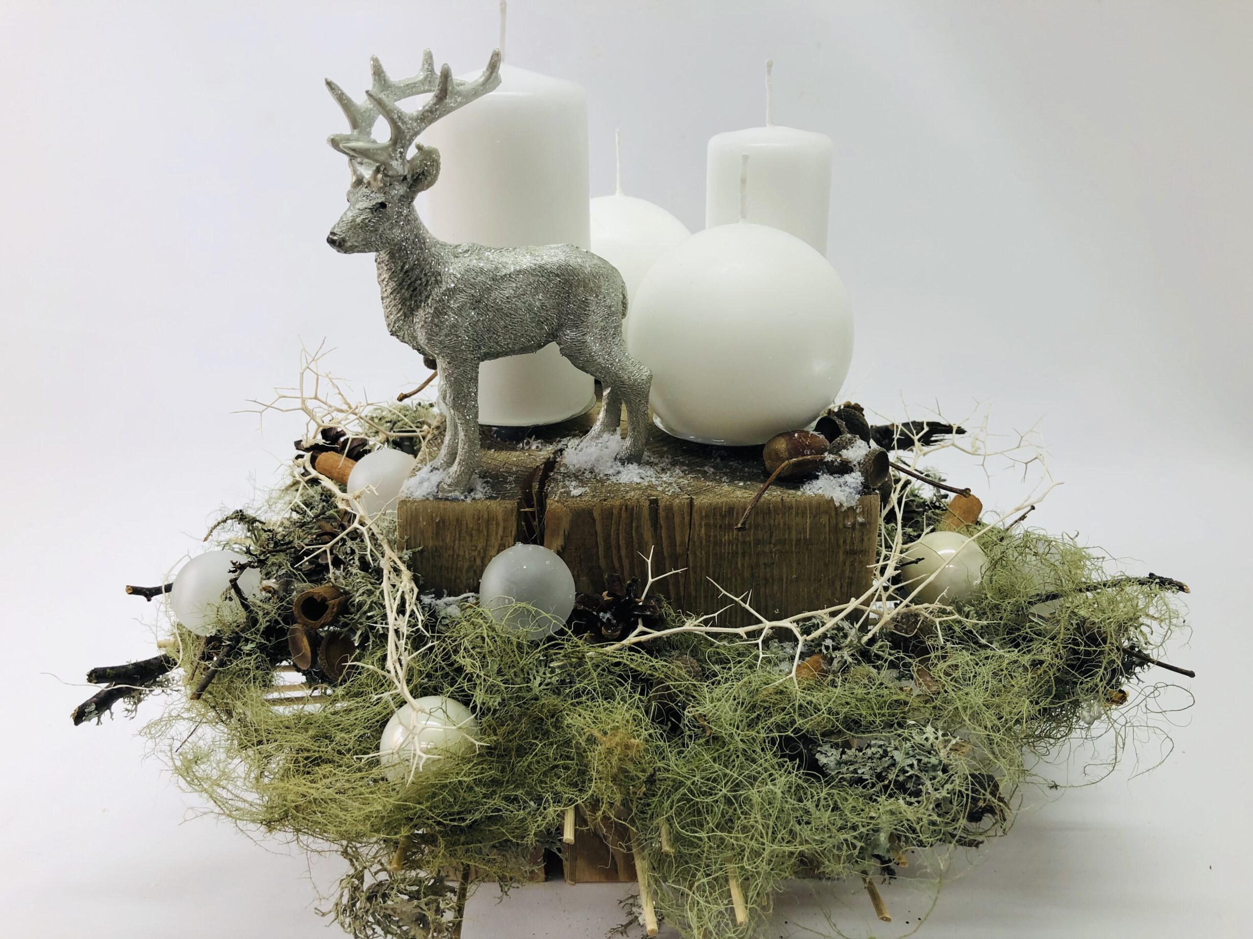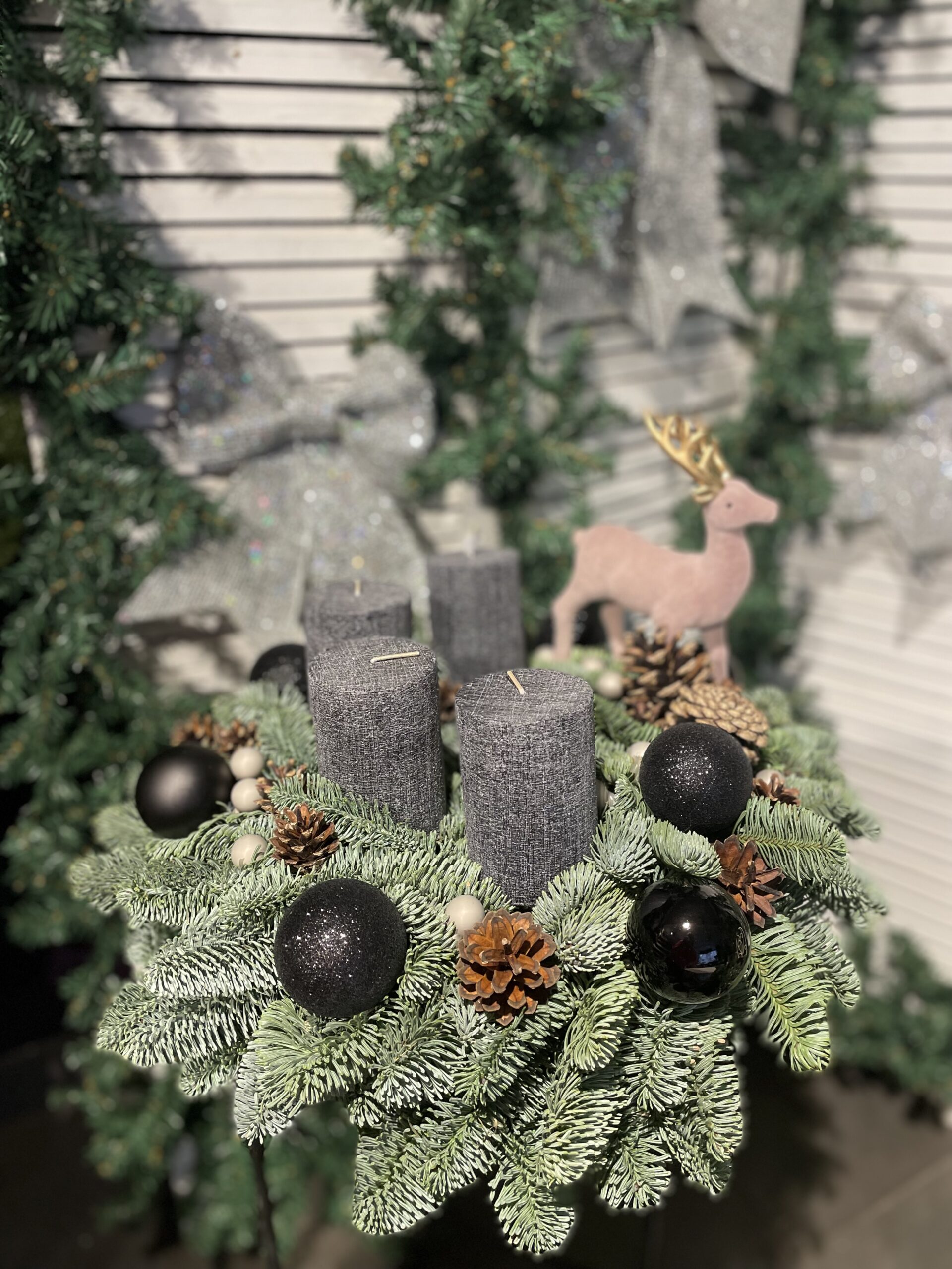 Esam sarupējuši arī plašu dekoru klāstu:briežus, stirnas, laumiņas , mirdzošas bumbas un daudz ko citu. Tiem, kam tuvāka sirdij daba,piedāvājam arī skaistus vainadziņus no dabas materiāliem.