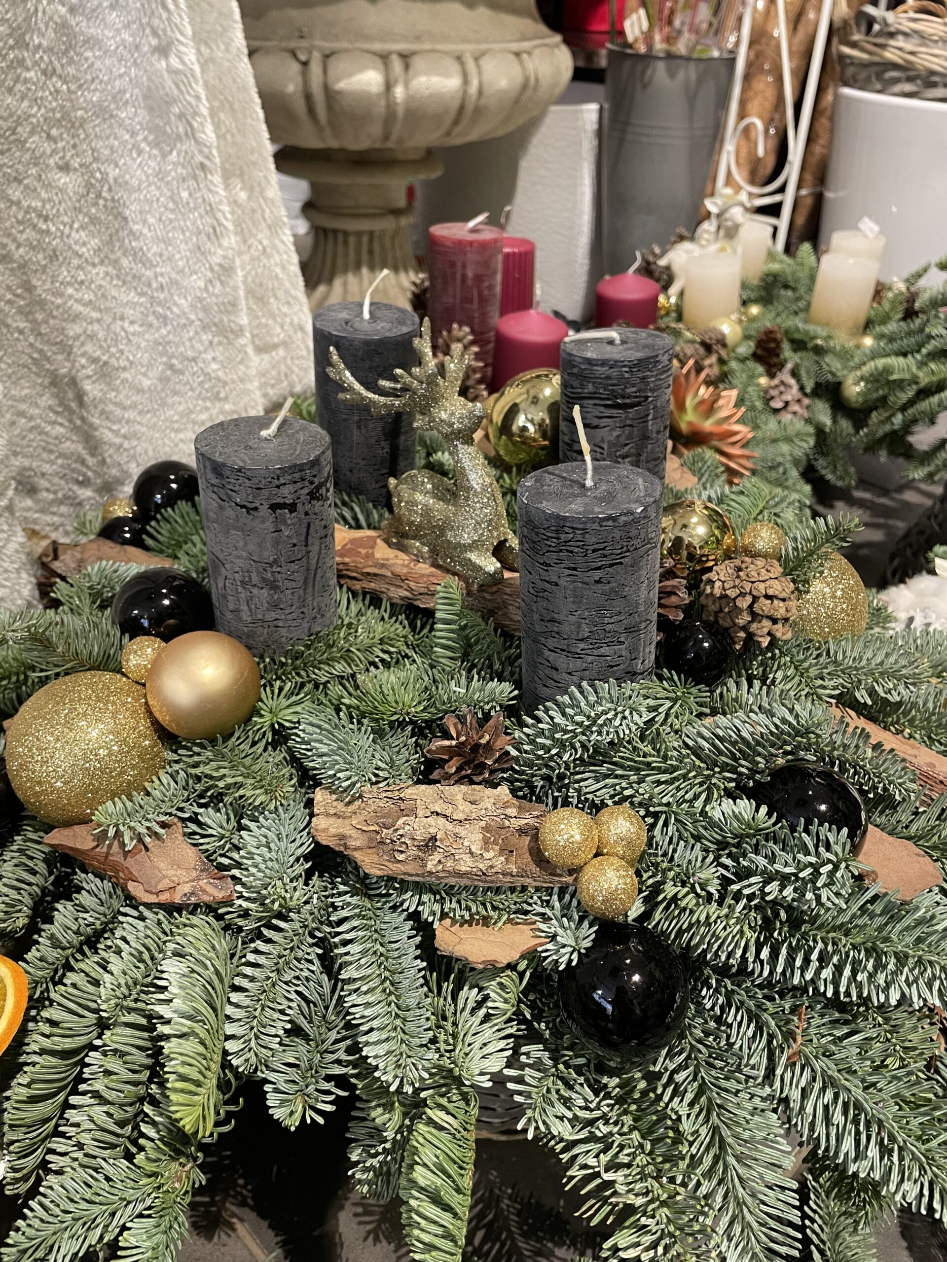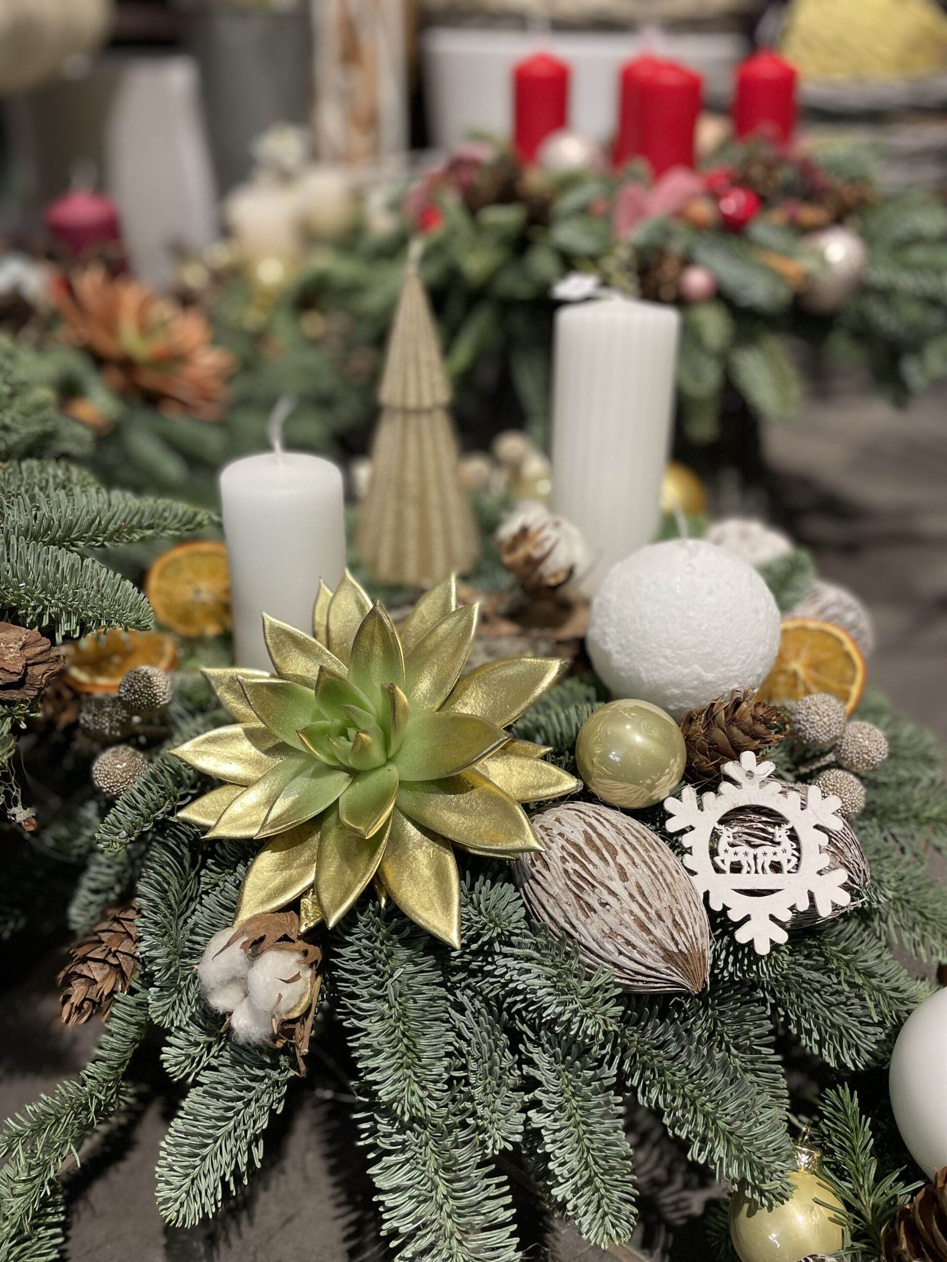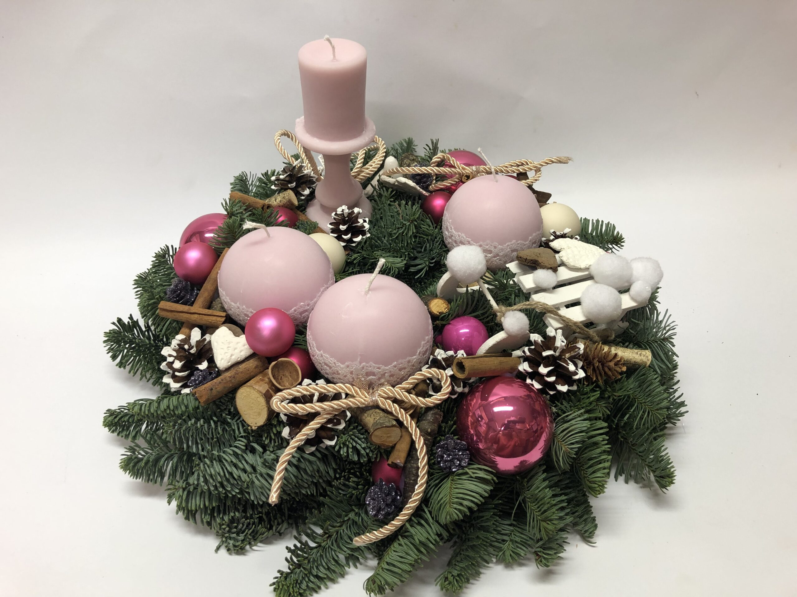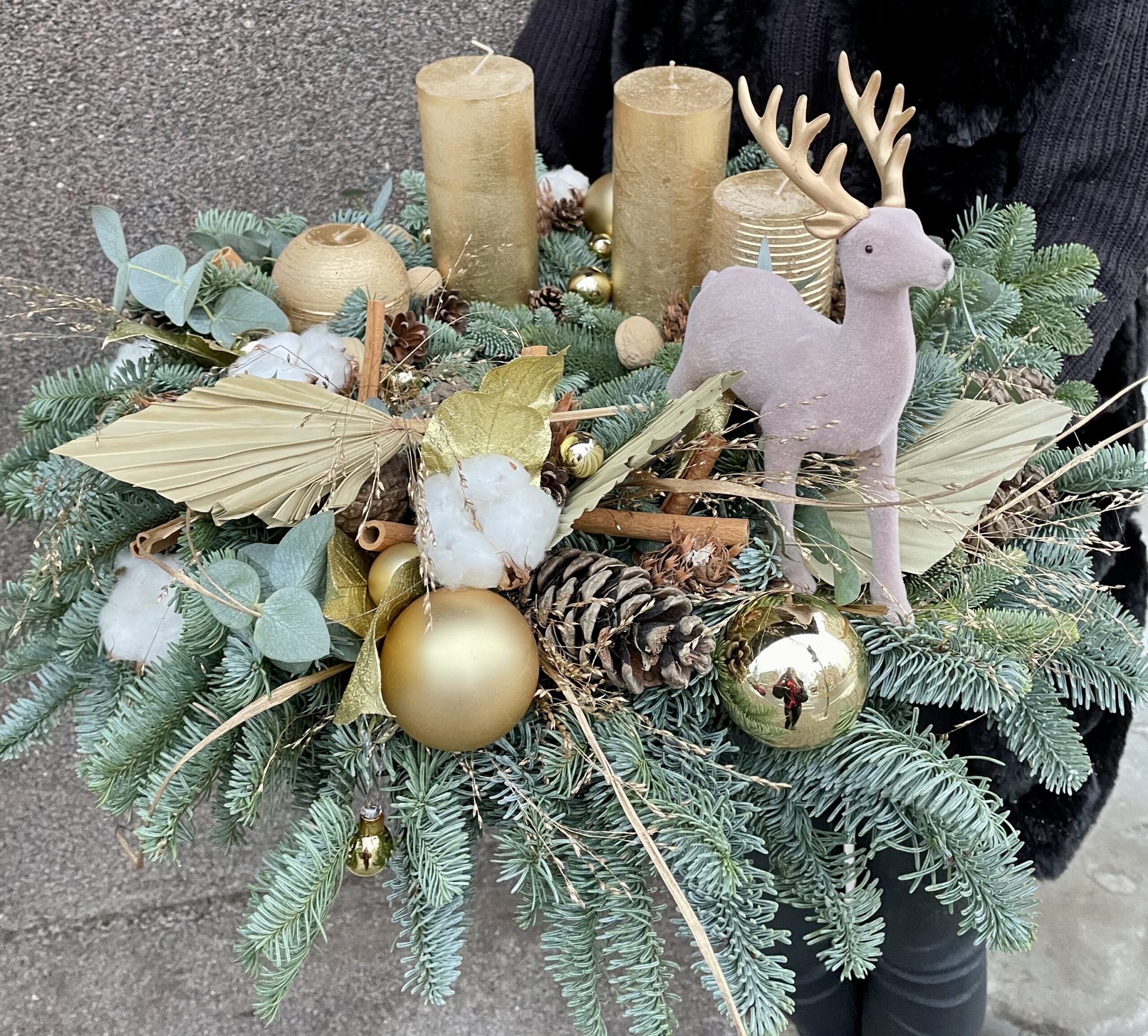 Esam sarupējuši arī plašu dekoru klāstu:briežus, stirnas, laumiņas , mirdzošas bumbas un daudz ko citu. Tiem, kam tuvāka sirdij daba,piedāvājam arī skaistus vainadziņus no dabas materiāliem.