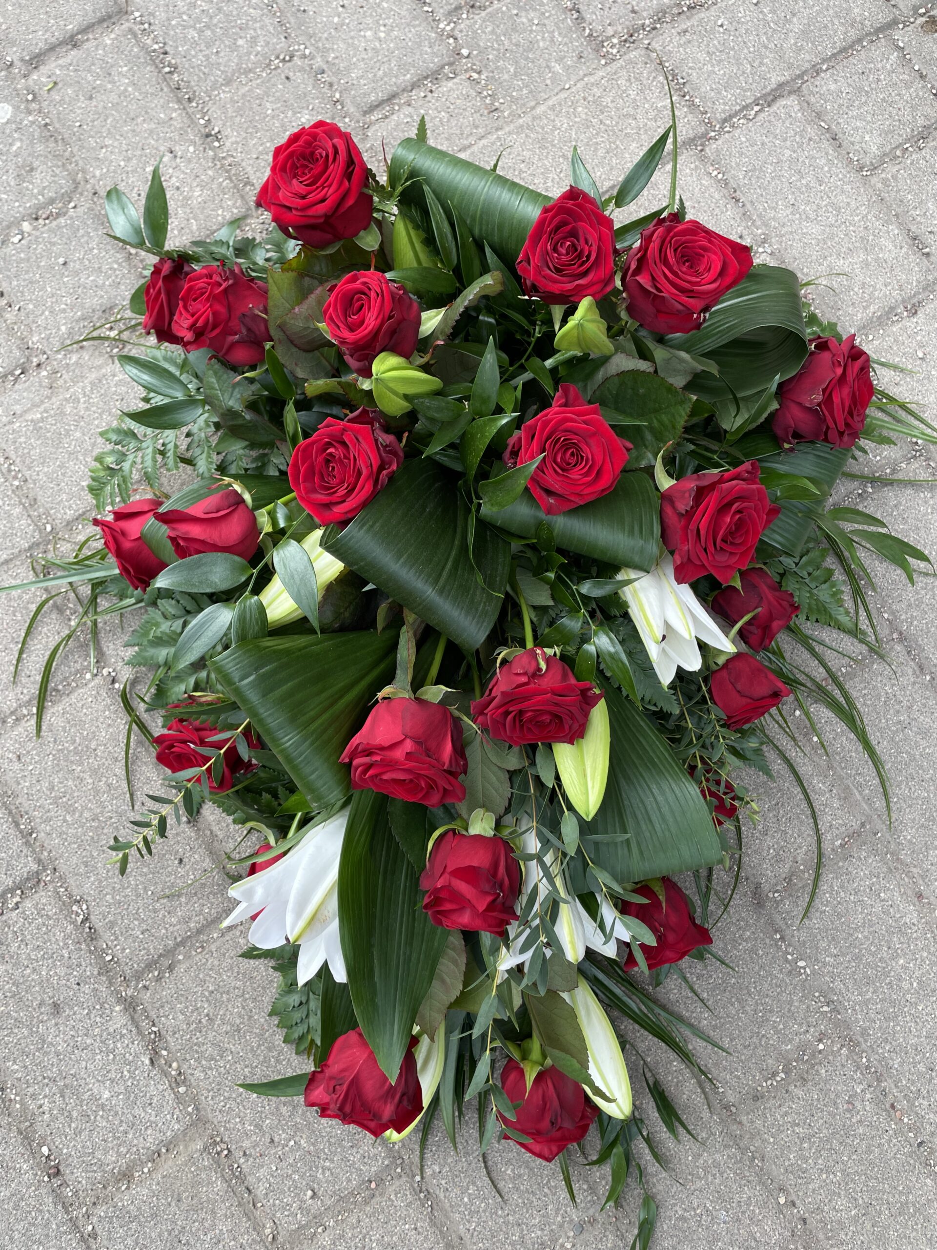 Штраус № 5, состав: Лилии, Розы, зелень.
